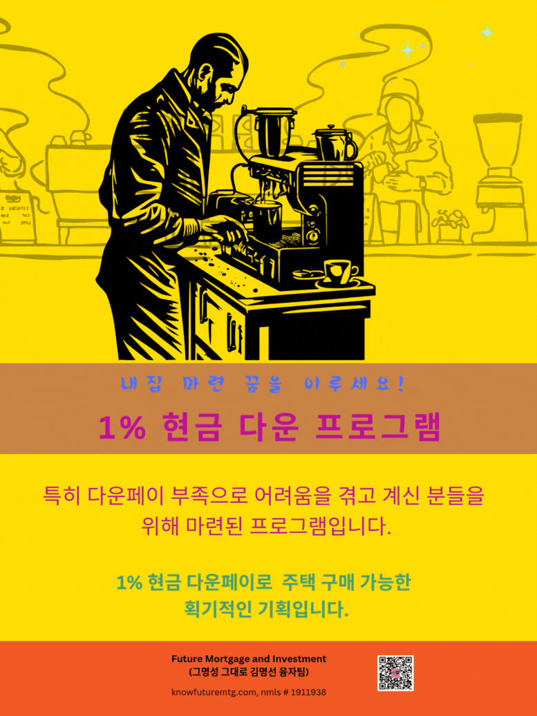 모두가 감사와 풍요를 나누는 따뜻한 추수 감사절 입니다. 혹시 이 특별한 계절에 새로운 보금자리를 찾고 계시다면, 주택 구입 융자에 대한 모든 과정을 제가 친절하고 든든하게 도와 드릴 준비가 되어 있습니다. 편하게 연락 주세요! 자세히 보러가기 (클릭하셔요): https://www.knowfuturemtg.com/landing-page2236c01c Future Mortgage and Investment (그명성 그대로, 김명선 융자팀) NMLS #1911938 ask@knowfuturemtg.com 770-242-3413 (Text first and Call) 770-679-8595 (Fax) 800-590-8580 (Text or Call) 주의 사항 1: 융자는 돈 (신용)이고 돈 (신용) 은 빚입니다. 융자를 잘 활용하면 자산 증식이나 경제 생활에 큰 이익을 주지만, 그렇지 못할 경우, 집을 잃거나 경제적인 파국의 원인이 될 수 있읍니다. 육체적인 고통이나 정신적인 고통은 911을 누르시고, 채무로 인한 경제적인 고통은 CFPB, Financial Counselor 혹은 가까운 융자 전문가에게 문의하셔요. 주의 사항 2: • 이 제안은 특정 대출 조건 및 자격 요건을 충족하는 고객에게만 해당됩니다. • 명시된 승인 시간 및 자금 수령 기간은 모든 경우에 적용되는 것은 아니며, 대출 금액, 지역, 서류 준비 상태 및 기타 조건에 따라 달라질 수 있습니다. • 모든 대출은 최종 심사 및 승인 절차를 거쳐서 최종 융자 승인이나 융자 거부가 될 수 있읍니다. • 모든 이자율 및 수수료와 페이먼트는 시장 상황에 따라 변동될 수 있으며, 최종 이자율은 융자 신청이후 Lock 시점에 결정됩니다. 주의사항 3: 추수 감사절과 크리스마스 연말연휴로 인해서 융자 진행이 개인과 상황에 따라서 지연될 수 있읍니 다. 모델: AI 도우미, 소피아 978-788-1544 (24시간, 365일 통화 가능합니다)