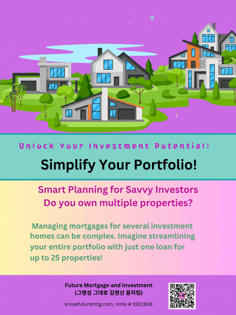 ❤❣💟💛💌💯 수입 증명 없이 주택 구입 가능할까요? 더 많은 투자용 부동산을 구입하고 싶으신가요? ❤❣💟💛💌💯 지금이 바로 현재 갖고 계신 자산목록 (포트폴리오)를 확장하실 기회입니다. 투자용 주택 융자 신청하기 (클릭하셔요~) ❤❣💟💛💌💯 Future Mortgage and Investment (그명성 그대로, 김명선 융자팀) ask@knowfuturemtg.com 770-242-3413 (Text first and Call) 770-679-8595 (Fax) 800-590-8580 (Text or Call) ❤❣💟💛💌💯 주의1: Information is subject to change. Certain restrictions apply. Subject to borrower approval. Not applicable in West Virginia. Not available on Texas 50(a)(6). 주의 2: 융자는 돈 (신용)이고 돈 (신용) 은 빚입니다. 융자를 잘 활용하면 자산 증식이나 경제 생활에 큰 이익을 주지만, 그렇지 못할 경우, 집을 잃거나 경제적인 파국의 원인이 될 수 있읍니다. 육체적인 고통이나 정신적인 고통은 911을 누르시고, 채무로 인한 경제적인 고통은 CFPB, Financial Counselor 혹은 가까운 융자 전문가에게 문의하셔요.