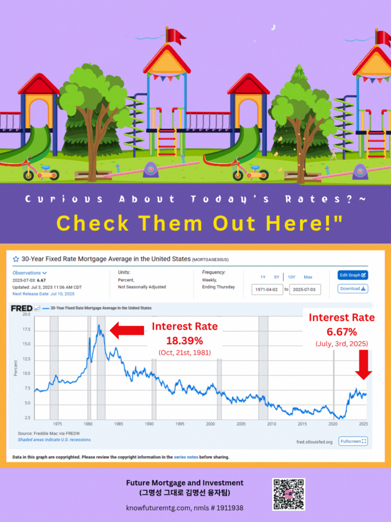 오늘 이자율이 궁금하신가요? 직접 확인해 보셔요~~~ (클릭하셔요) https://www.knowfuturemtg.com/landing-page2236c01c Future Mortgage and Investment (그명성 그대로, 김명선 융자팀) ask@knowfuturemtg.com 770-242-3413 ( Text first and Call) 770-679-8595 (Fax) 800-590-8580 (Text or Call) 주의 사항 1: 융자는 돈 (신용)이고 돈 (신용) 은 빚입니다. 융자를 잘 활용하면 자산 증식이나 경제 생활에 큰 이익을 주지만, 그렇지 못할 경우, 집을 잃거나 경제적인 파국의 원인이 될 수 있읍니다. 육체적인 고통이나 정신적인 고통은 911을 누르시고, 채무로 인한 경제적인 고통은 CFPB, Financial Counselor 혹은 가까운 융자 전문가에게 문의하셔요. 주의 사항 2: • 이 제안은 특정 대출 조건 및 자격 요건을 충족하는 고객에게만 해당됩니다. • 명시된 승인 시간 및 자금 수령 기간은 모든 경우에 적용되는 것은 아니며, 대출 금액, 지역, 서류 준비 상태 및 기타 조건에 따라 달라질 수 있습니다. • 모든 대출은 최종 심사 및 승인 절차를 거쳐서 최종 융자 승인이나 융자 거부가 될 수 있읍니다. • 모든 이자율 및 수수료와 페이먼트는 시장 상황에 따라 변동될 수 있으며, 최종 이자율은 융자 신청이후 Lock 시점에 결정됩니다. 주의사항 3: 추수 감사절과 크리스마스 연말연휴로 인해서 융자 진행이 개인과 상황에 따라서 지연될 수 있읍니 다. 모델: AI 도우미, 소피아 978-788-1544 (24시간, 365일 통화 가능합니다)